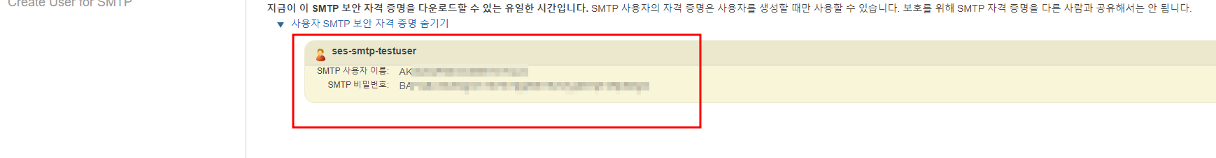 이렇게 SMTP 엔드포인트에 접근할 계정을 생성했다.