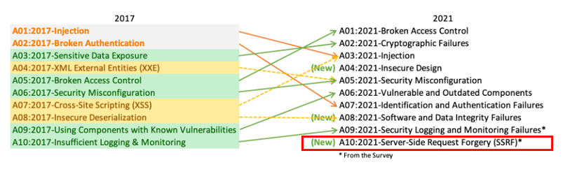 자주 발생되는 취약점은 아니나, 해가 지남에 따라 발생빈도가 꾸준하게 증가하고, 파급력도 커져 2021 OWASP TOP 10의 10위에 새롭게 등재된 것을 확인할 수 있다.