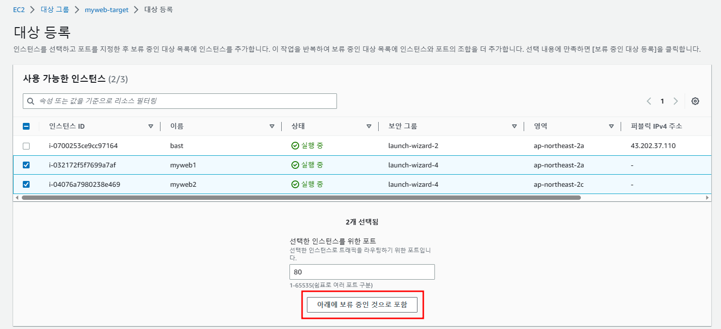 다음으로 대상 그룹에 포함될 연결대상을 지정해준다.