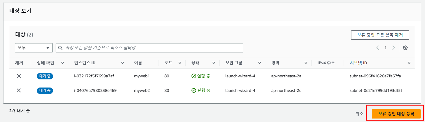 우리는 처음에 생성한 Private Subnet의 인스턴스 2개를 연결해줄 것이므로 인스턴스 유형을 선택했다.