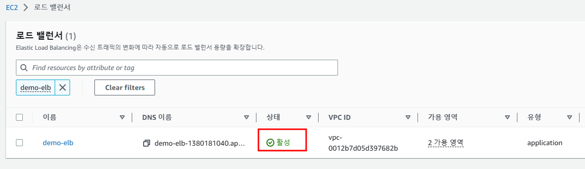 로드밸런서를 생성 후, 몇 분 이내로 활성화가 되며 부여된 DNS 이름을 통해 접속할 수 있다.