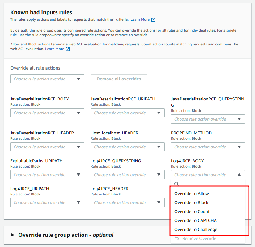 추가로 Rulegroup의 각 Rule 별로 탐지 Action을 개별적으로 관리할 수 있다.
