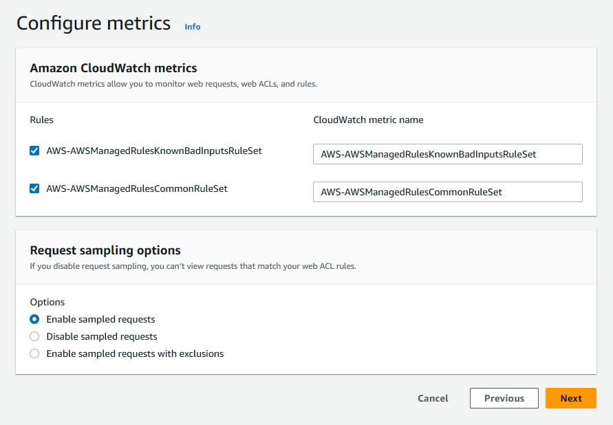 간단하게 AWS Managed 룰셋을 몇개 가져와서 설정