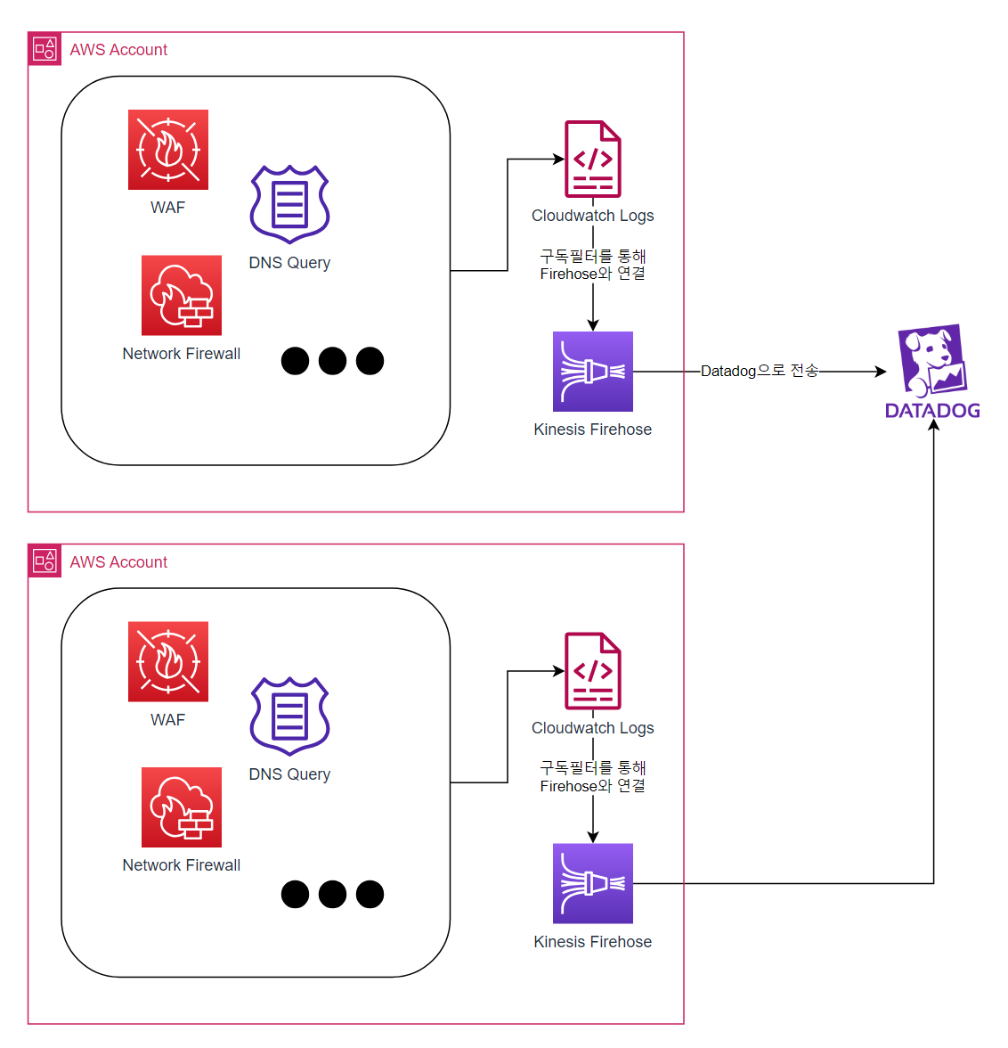 즉, 하나의 Datadog 계정을 두고 여러 AWS 계정의 여러 서비스들의 로그를 모니터링할 수 있다는 것이다. (중앙화된 로그)