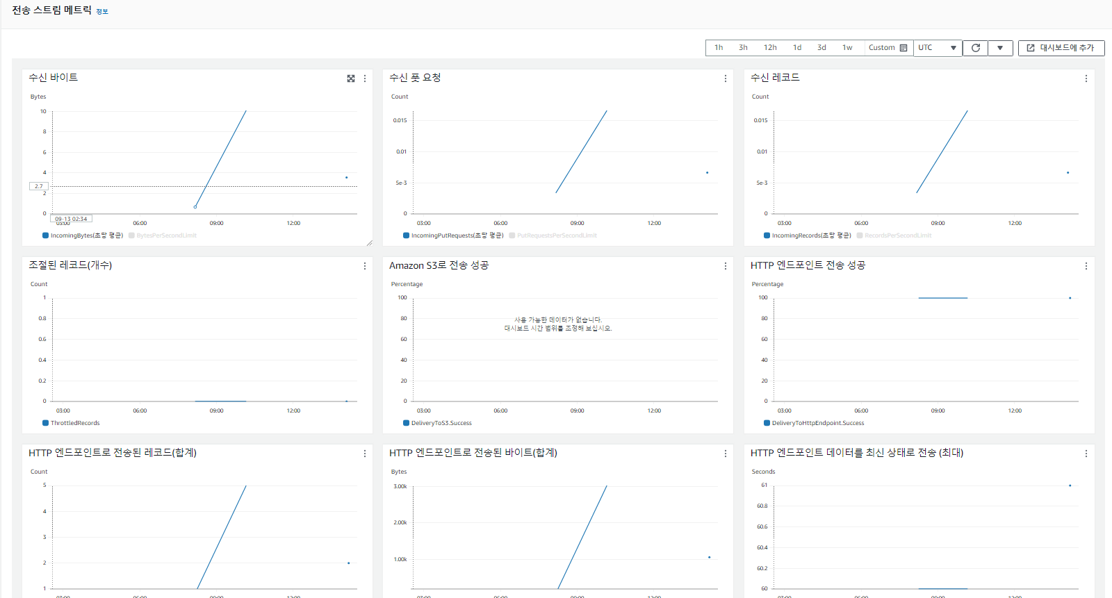 Firehose 스트림의 메트릭을 확인해 스트림의 정상 동작을 확인할 수 있다.