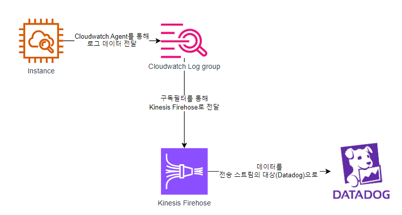 이번에는 Cloudwatch Agent를 통해 인스턴스에서 로그를 전달받아 Log group에 저장하고, Kinesis Firehose를 거쳐서 Datadog으로 export까지 수행하는 아키텍쳐를 생성해본다.