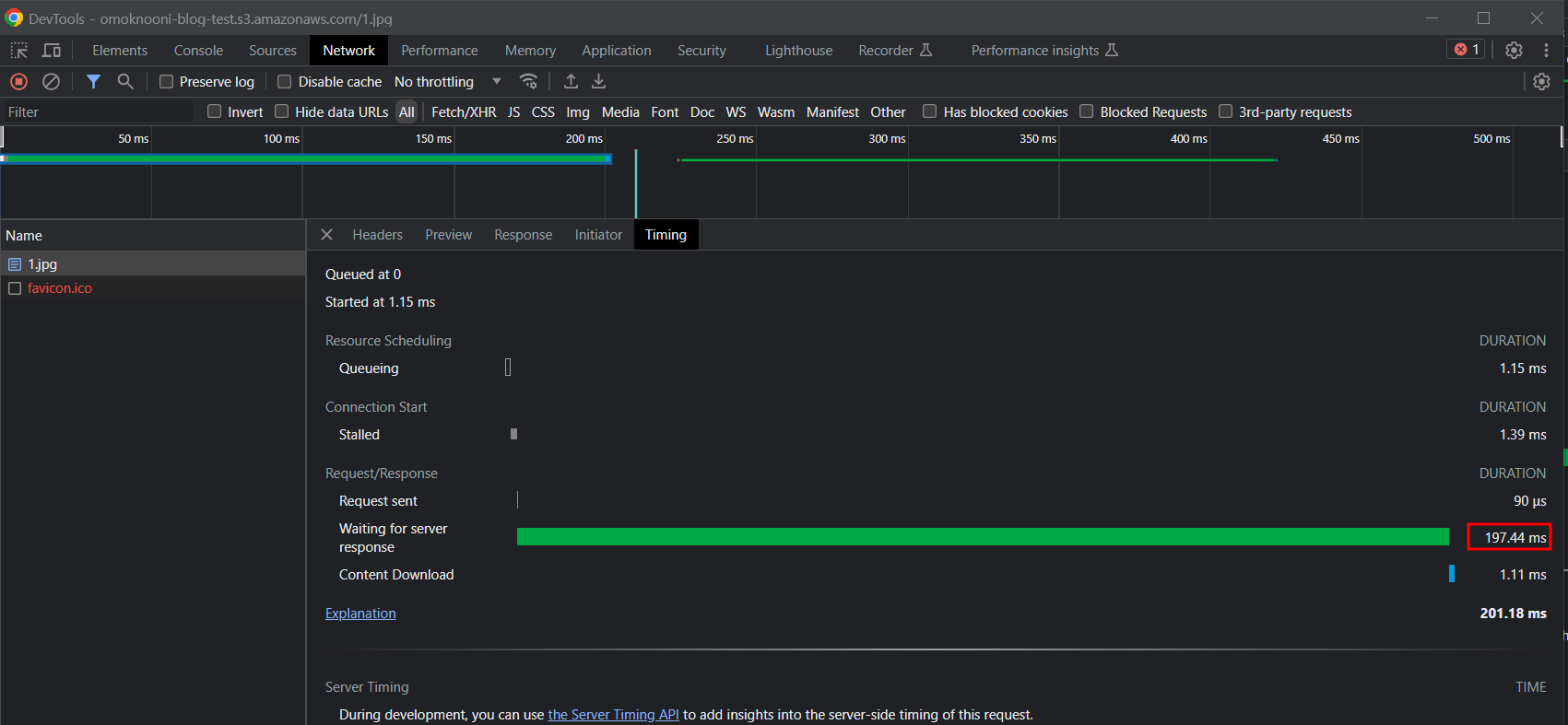 S3 객체URL로 직접 액세스하는 경우, 평균 200ms 소요됨을 볼 수 있었다.