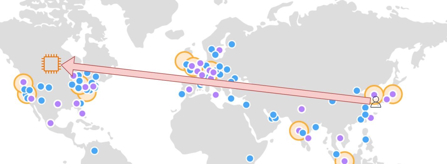 반면, Cloudfront를 통해 us-east-1의 웹서버를 배포한 경우, 접속자 근처 엣지 로케이션에 저장된 캐시데이터를 가져와 직접 us-east-1에 있는 서버까지 연결하는 것 보다 훨씬 빠르게 컨텐츠에 액세스할 수 있다.