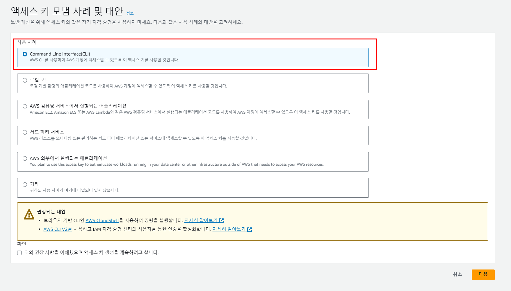 사용자 생성 후 액세스 키도 생성한다.