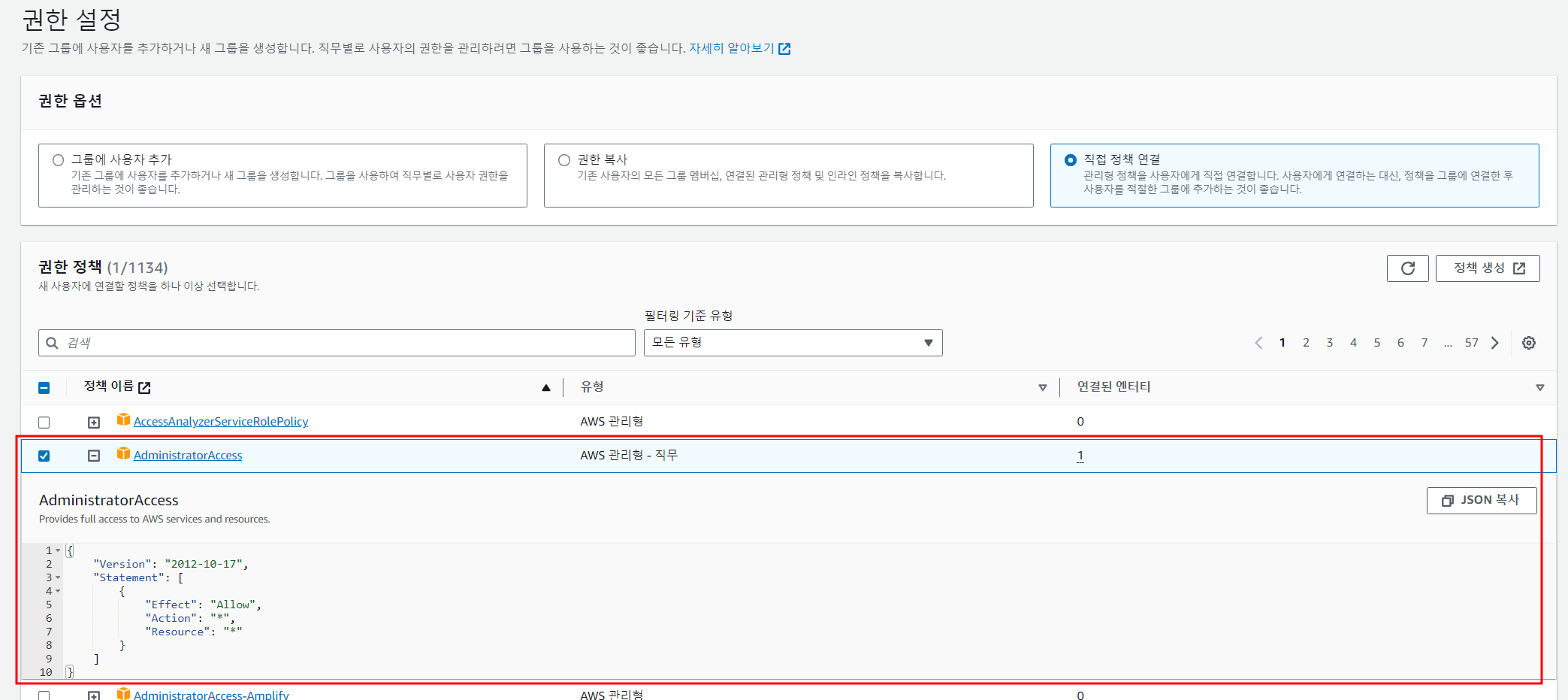 Terraform을 통해 다양한 리소스들을 관리하므로 AdministratorAccess 권한을 가진 사용자를 생성한다.