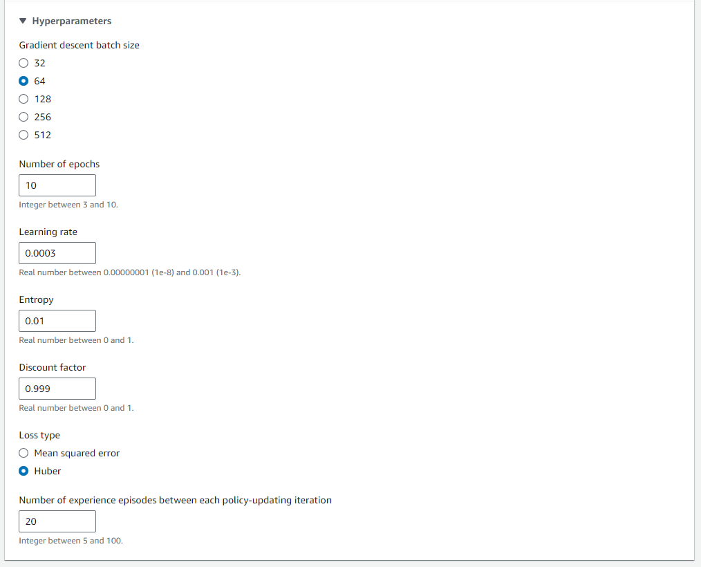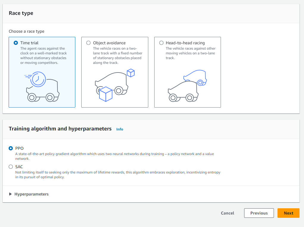 다음으로 Race type, Train 알고리즘, 하이퍼파라미터를 설정할 수 있다.