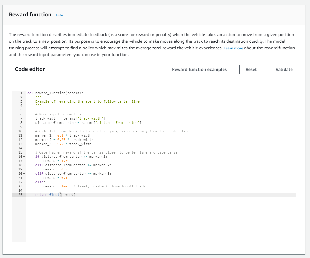 마지막으로 모델 생성에서 가장 큰 비중을 차지하는 보상함수(Reward function)를 생성한다.