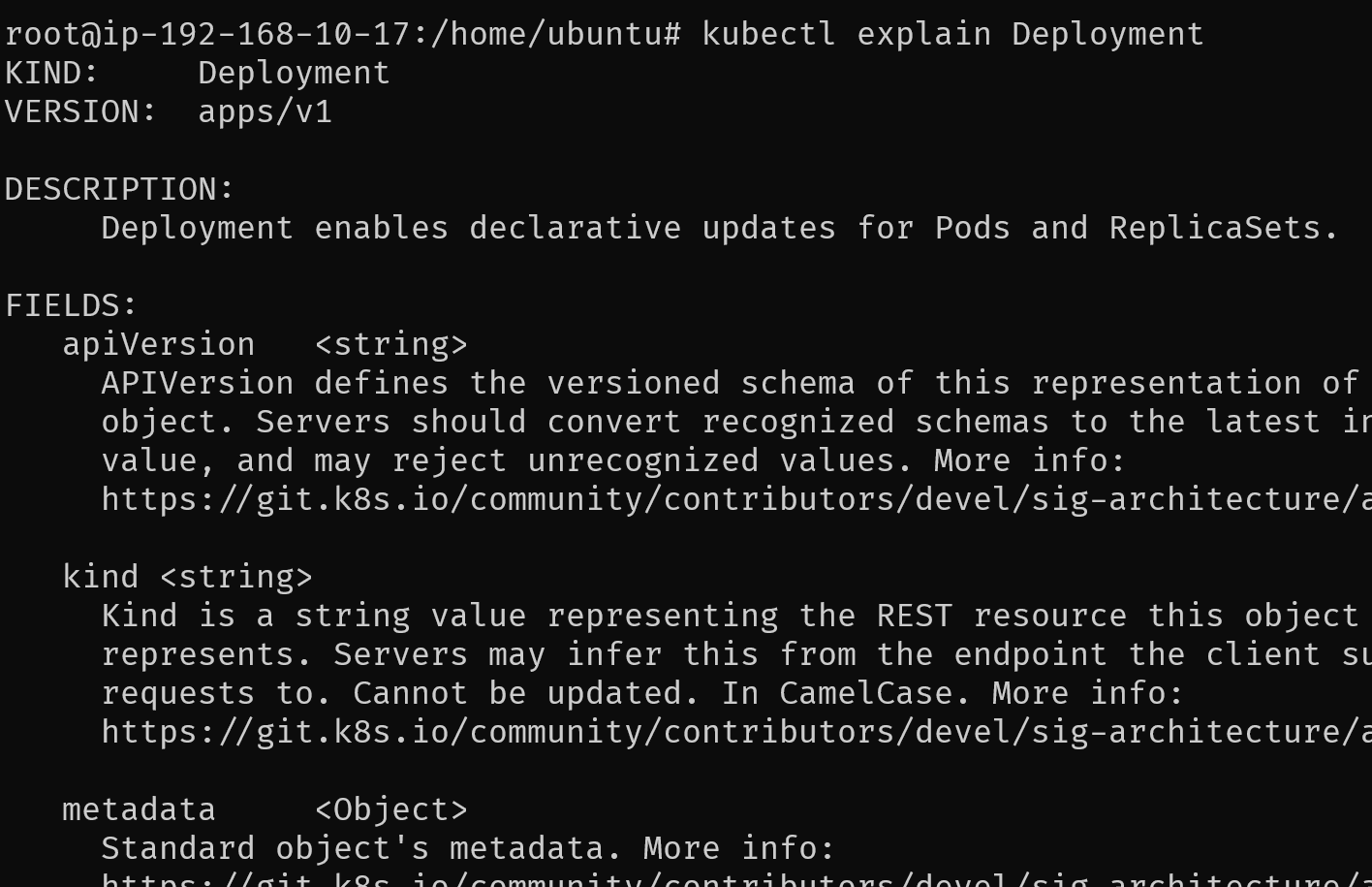 kubectl explain으로 해당 리소스를 어떻게 정의하는지에 대한 내용을 확인할 수 있다.