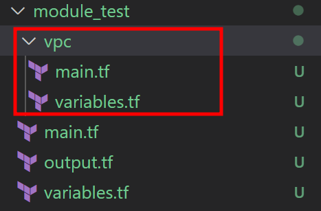 local에 존재하는 vpc 모듈을 불러오고, 변수(moduletest_vpc_cidr)에 값을 지정해주었다.