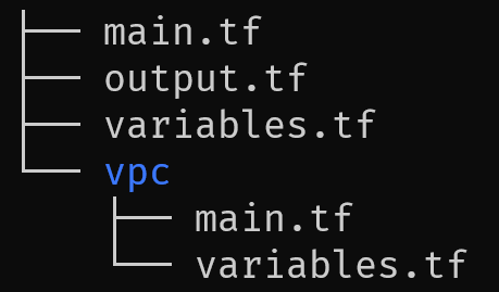 일반적으로 Module로 구분시켜둔 Terraform 프로젝트 구조는 아래와 같이 구성되어 있다고 한다.