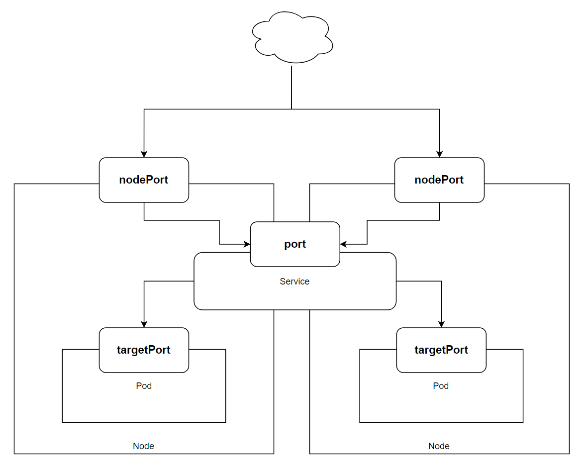 Service와 파드의 포트 관계는 아래 그림으로 설명할 수 있다.