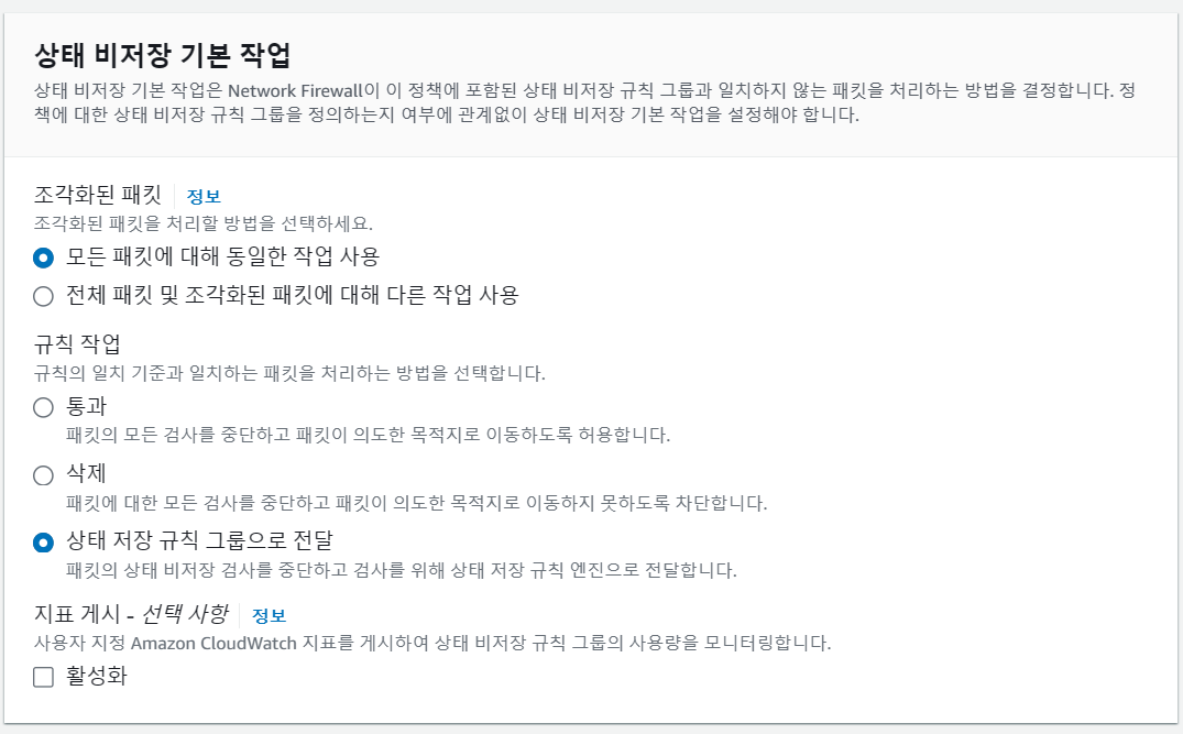 앞서 언급하였듯이 Network Firewall에는 상태저장 규칙과 상태 비저장 규칙을 모두 적용시킬 수 있다.