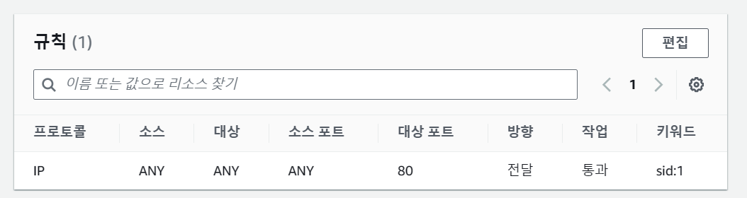 '규칙 추가'로 이 규칙을 Rule Group에 추가하고, Rule Group을 생성한다
