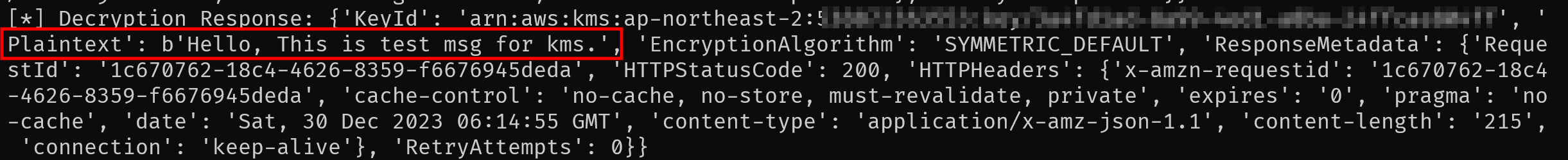 마찬가지로 boto3에서 제공하는 decrypt 메소드를 이용했다.