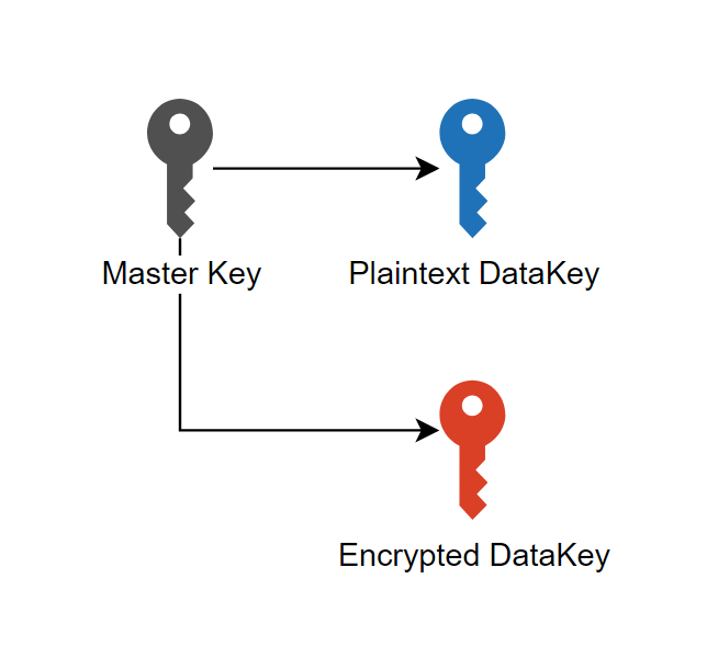 (하나는 DataKey의 평문, 다른 하나는 Plaintext DataKey가 Customer Master Key로 암호화된 Encrypted DataKey)