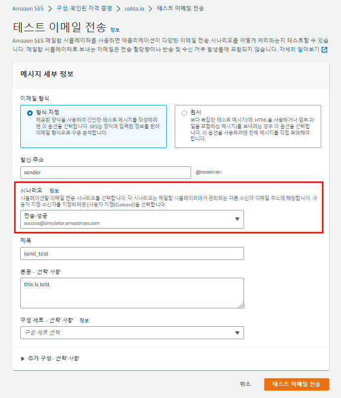 인증 후 확인을 위해 테스트 이메일을 전송할 수 있다.